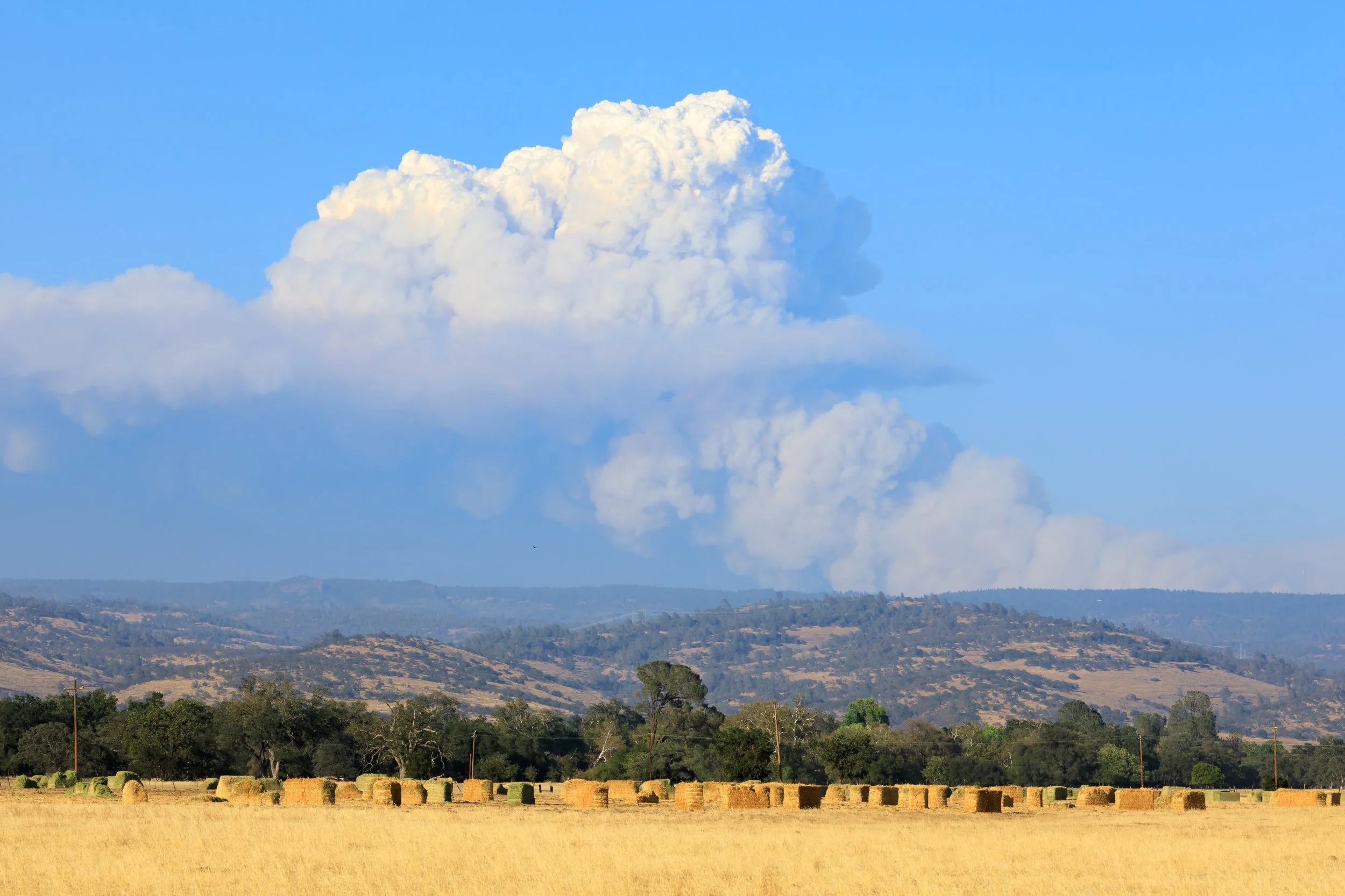 The Dixie Fire in Plumas County and Butte County produces a pyrocumulus (PyroCb) cloud in summer 2021. PyroCbs form when smoke and strong winds caused by a wildfire meet moisture in the atmosphere, and punch above the tropopause . Image by Frank Schulenburg - Own work, CC BY-SA 4.0, https://commons.wikimedia.org/w/index.php?curid=107802721